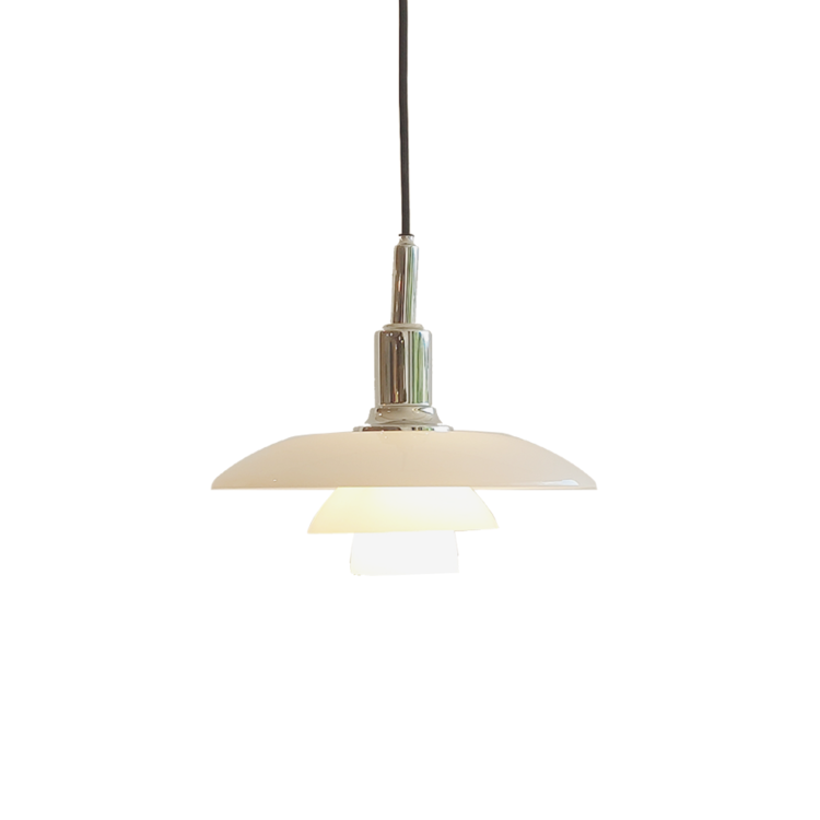 2022년 루이스폴센 국내 공식 편집숍에서 구매하신 제품입니다. Poul Henningsen이 디자인한 PH 시리즈는 1925년 파리 세계 박람회 출시를 시작으로 루이스폴센을 대표하는 스테디셀러로 자리매김 했으며, 여러 개로 중첩된 갓과 반사판으로 눈부심 방지에 탁월하며 편안하면서도 풍성한 빛을 전달합니다. 특히 3/2 모델은 비침 없는 핸드블로운 유리갓 제품으로 은은한 광원을 제공합니다. 팬던트 구조로 천정 매립선에 연결하여 사용해야 합니다. | |