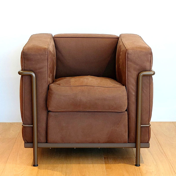르 코르뷔지에가 디자인한 Cassina사의 가장 대표적인 시리즈인 LC 시리즈 중 하나로, 좁고 높은 시트 사이즈 때문에 '쁘띠 모델'로 불리지만 온 몸을 감싸는 편안함을 줍니다. 정방향의 미니멀한 디자인의 표본으로 일컬어지며, 비례와 조화, 시대를 초월한 모던함을 보여주는 아이코닉한 체어입니다. 보시는 구성은 2022년 생산된 전시품으로 하이엔드 수입차 내장재로 사용되는 Alcantara 소재로 제작되었으며, 스웨이드 가죽 컬러에 맞게 프레임도 정품 주문제작 되었습니다. 소재 특유의 안온한 무드를 연출하실 수 있습니다.