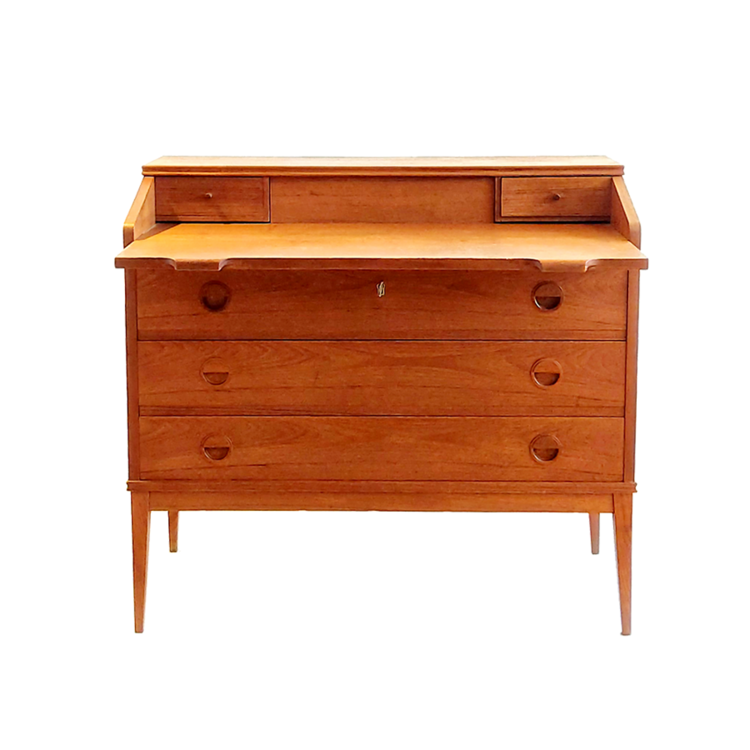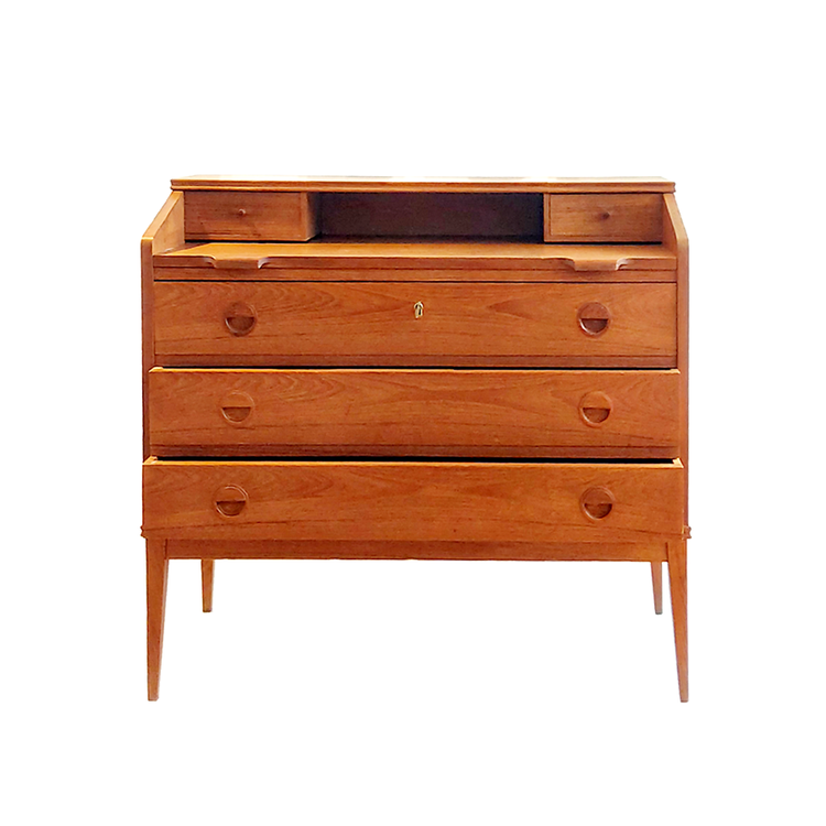 덴마크 디자이너 Riis Antonsen이 디자인한 티크목 소재의 간이 책상입니다. 확장형 상판 구조로 하단에 서랍이 있기 때문에 수납이 용이합니다. 화장대나 소형 책상으로 추천드립니다.